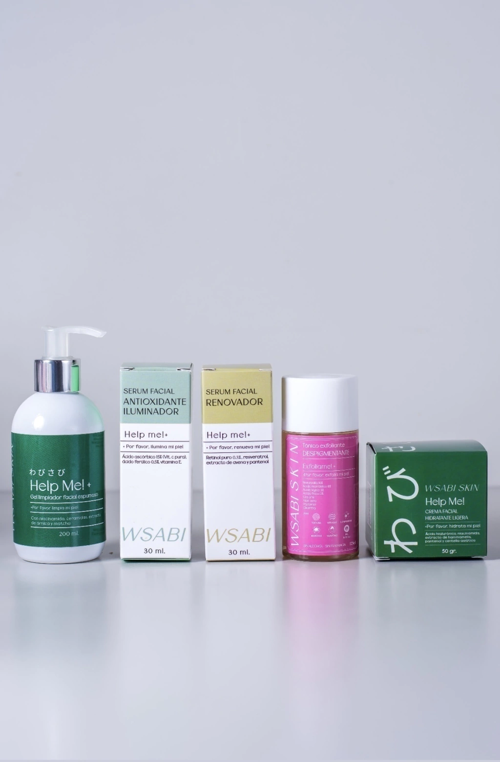 KIT FULL DESPIGMENTANTE PARA PIEL MIXTA - Limpiador, duo de serums, exfoliante, hidratante. + pad de limpieza de regalo